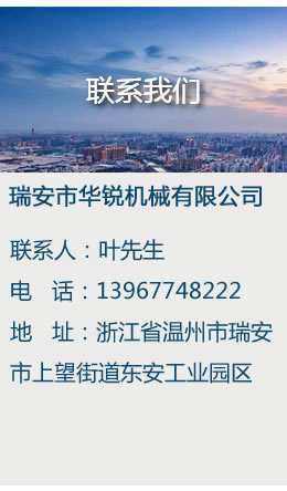 瑞安市華銳機械有限公司的誠信、實力和產(chǎn)品質(zhì)量獲得業(yè)界的認可。歡迎各界朋友蒞臨參觀、指導和業(yè)務洽談......【查看詳情】